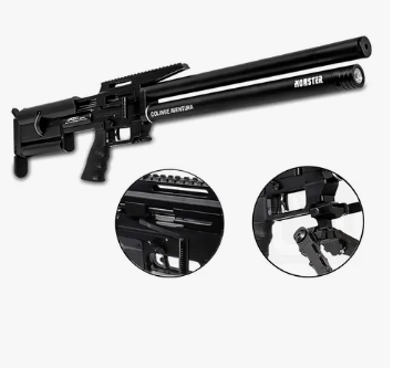 El Fox Monster es un rifle muy bien valorado por su potencia y precisión, cuenta con un gran depósito de 550cc que se infla a 250 bares, proporcionando una notable autonomía. El silenciador integrado y la culata con almohadilla de retroceso ajustable brindan mayor comodidad y reducción de impacto durante el uso. La versatilidad es clave en el Fox Monster, que incluye un riel Picatinny de 22mm tanto en la parte superior para la mira telescópica como en la parte inferior para la instalación de accesorios como bípodes.
